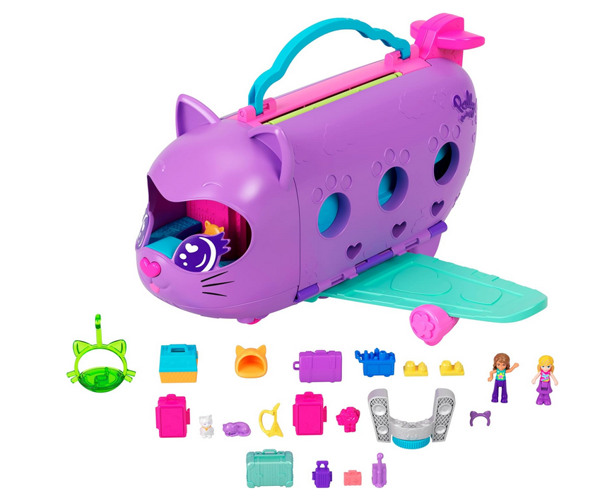 Czas na odlotową zabawę! Zestaw do zabawy Kotolot Polly Pocket zawiera 2 mikrolalki i 19 akcesoriów, w tym figurkę kotka, z którymi każda podróż będzie niezwykła.