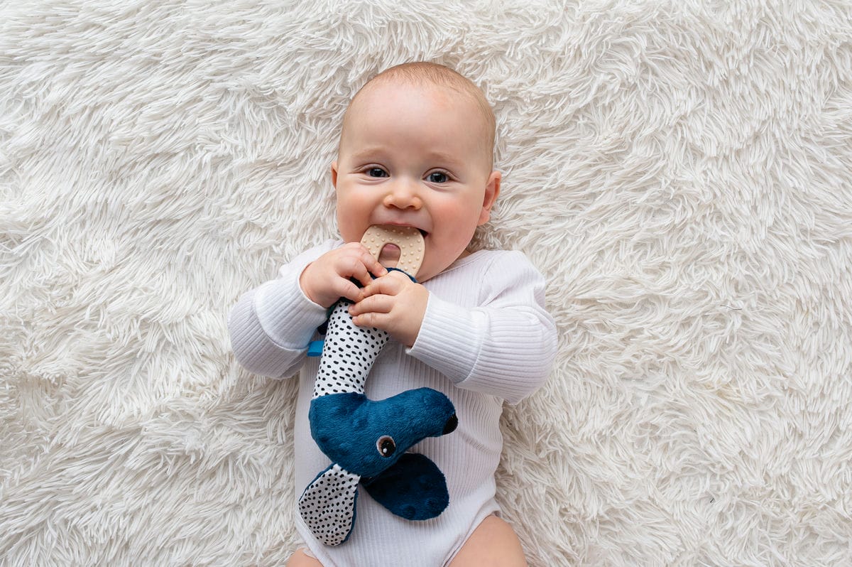 - Pomoc w ząbkowaniu: Gryzak wykonany z bezpiecznego silikonu ułatwia proces ząbkowania.