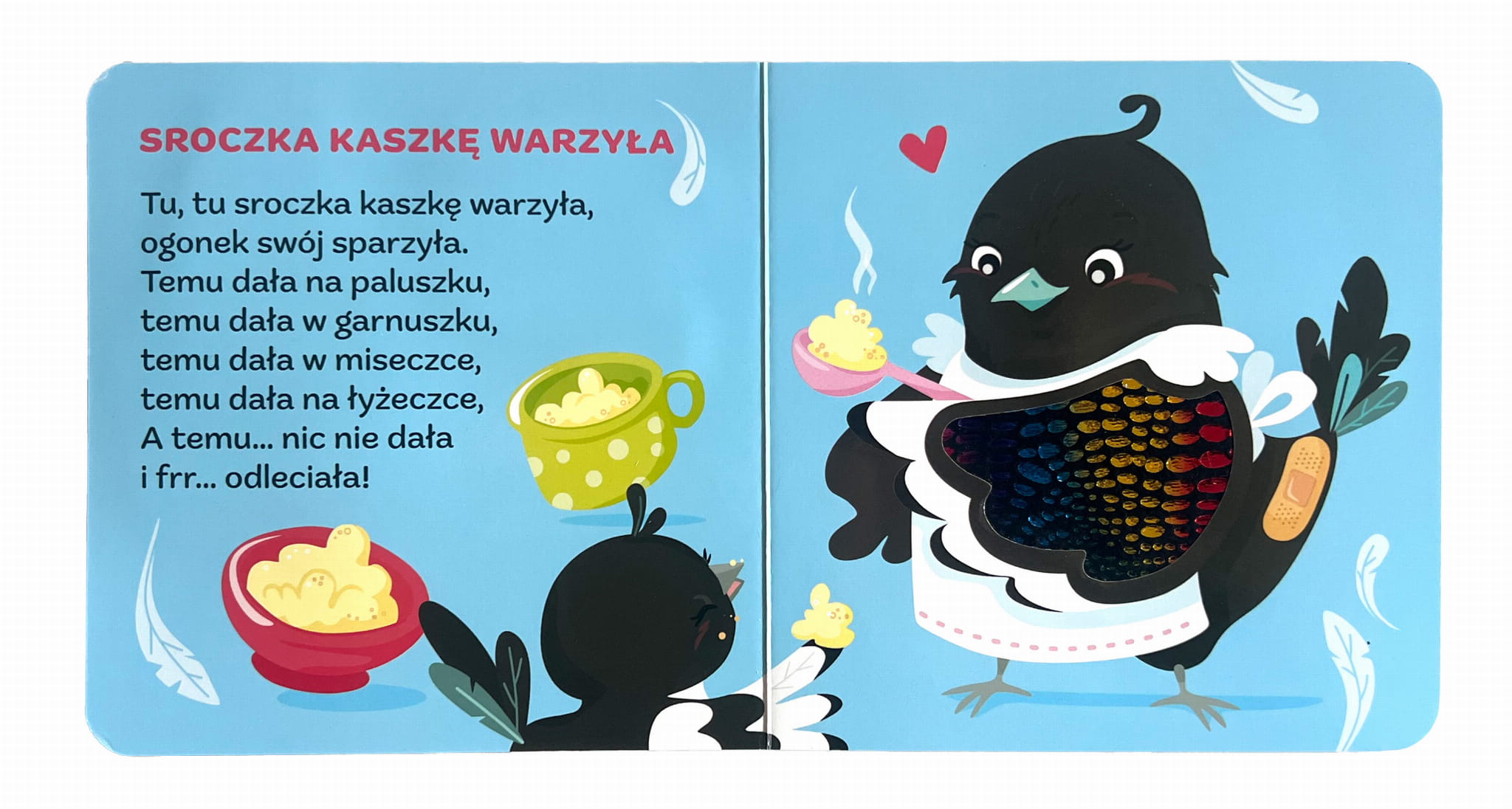 Czy chcesz zapewnić swojemu dziecku edukację pełną zabawy? Książeczka MOREX z pewnością sprosta tym wymaganiom! Dzieci uwielbiają dotykać, poznawać i odkrywać nowe rzeczy, dlatego ta książeczka jest czymś więcej niż tylko zbiorem stron - to mały świat czekający na odkrycie! Dzięki różnorodnym dotykowym elementom każdy na pewno znajdzie coś interesującego, a rymowanki mogą na długo zapadną w pamięć.