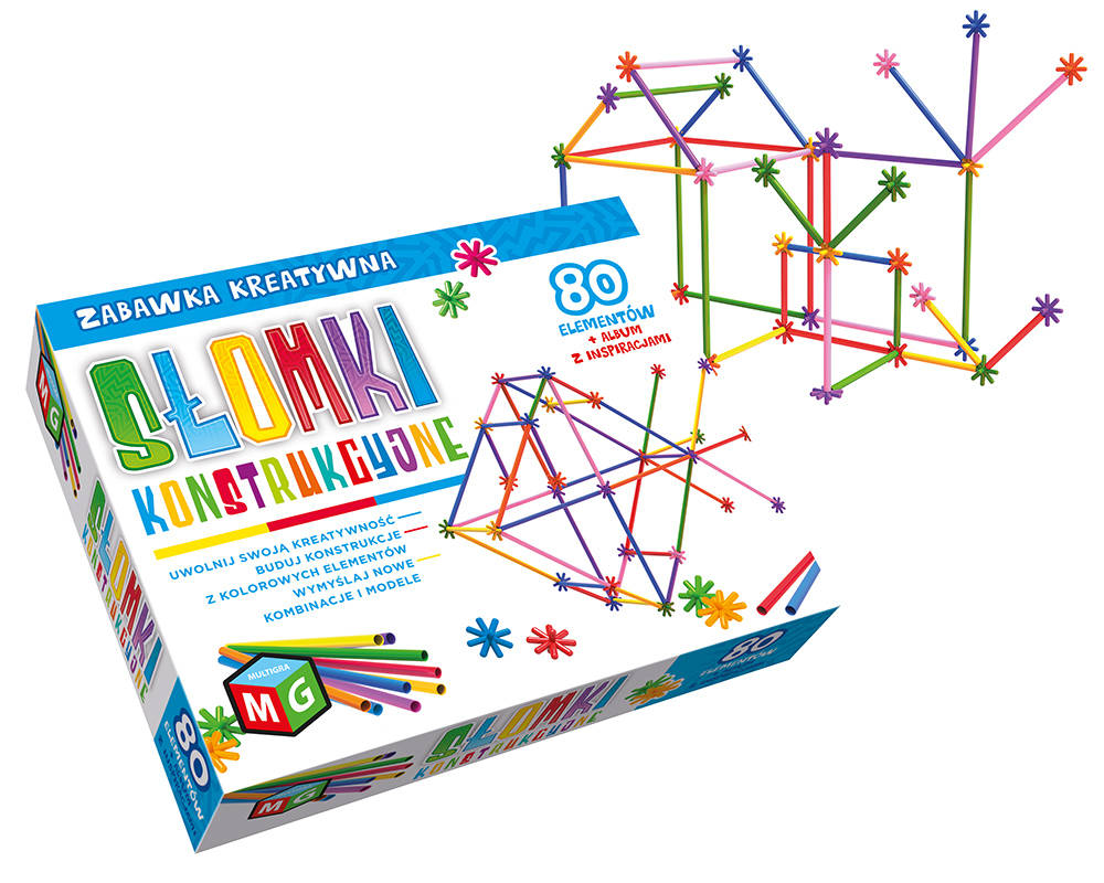 Wspaniała zabawa dla całej rodziny! Stwórz niesamowite kreacje z zestawem Słomek Konstrukcyjnych! Wykaż się umiejętnościami manualnymi oraz nieograniczoną wyobraźnią.W opakowaniu znajdują się kolorowe rurki o różnych długościach oraz złączki, za pomocą których zrealizujesz swoje wspaniałe pomysły i zbudujesz rozmaite konstrukcje. Słomki konstrukcyjne doskonalą zdolności manualne, koncentracji, małej motoryki, koordynacji wzrokowo-ruchowej, myślenia przestrzennego oraz poszerzają horyzonty wyobraźni.