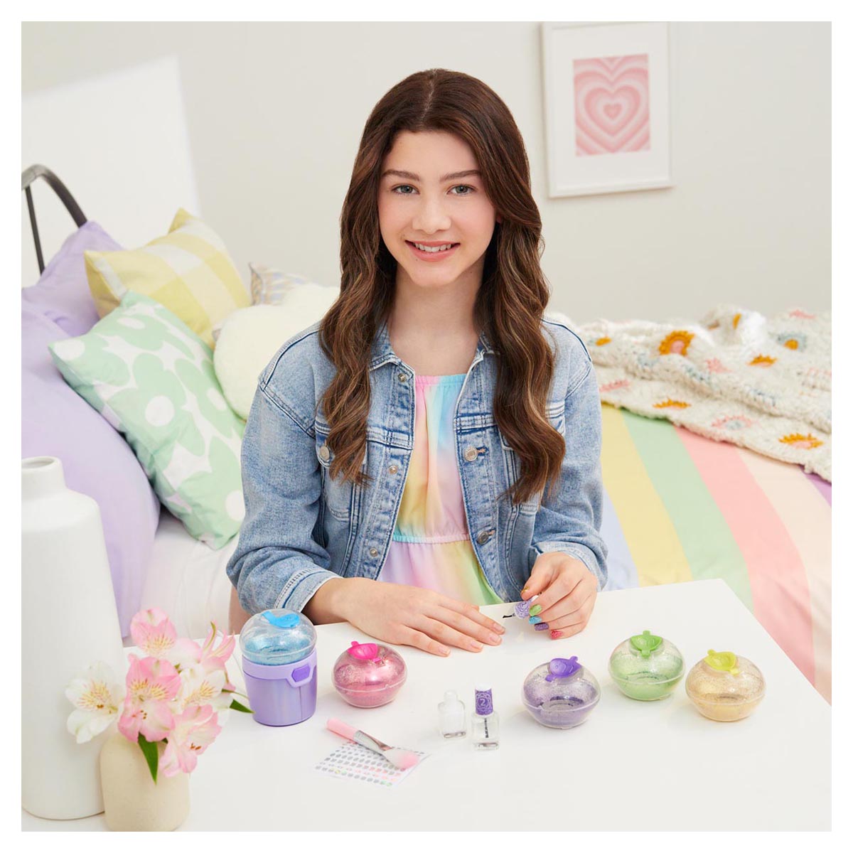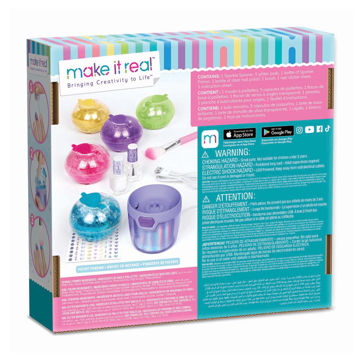 Ozdabianie paznokci jeszcze nigdy nie było tak łatwe i przyjemne! Nastolatki mogą stworzyć nawet 500 efektownych i błyszczących stylizacji, wybierając jeden z pięciu kolorów brokatu, nakładając na paznokieć błyszczący primer, a następnie wkładając palec do urządzenia Sparkle Spinner.