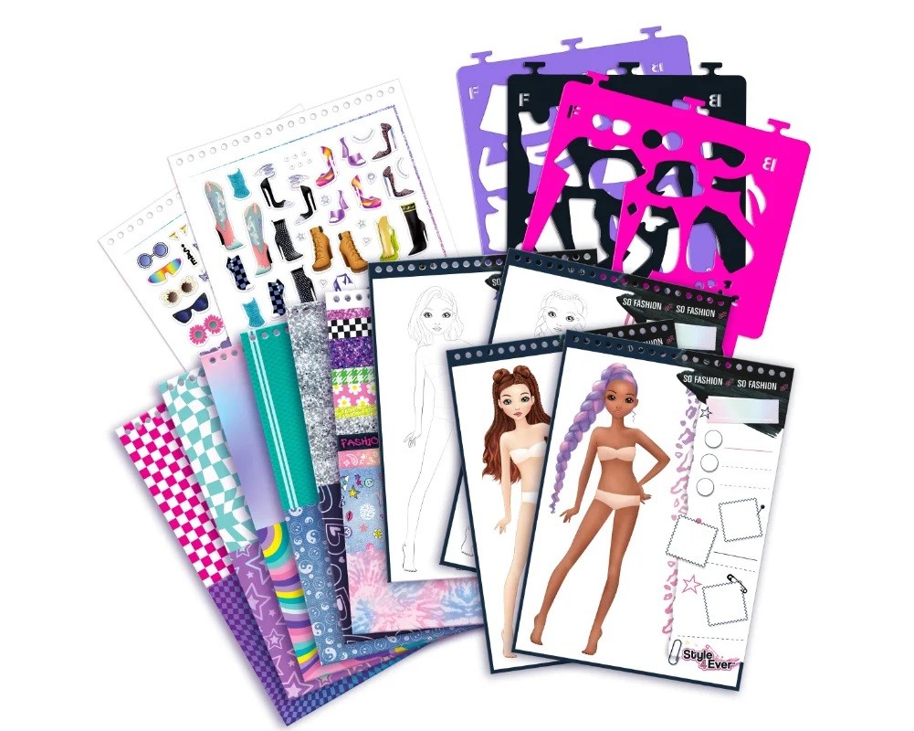 Jakie materiały znajdują się w zestawie? W zestawie znajdziesz różnorodne tkaniny, 20 szablonów oraz 105 naklejek, które umożliwiają tworzenie wielu unikalnych stylizacji.