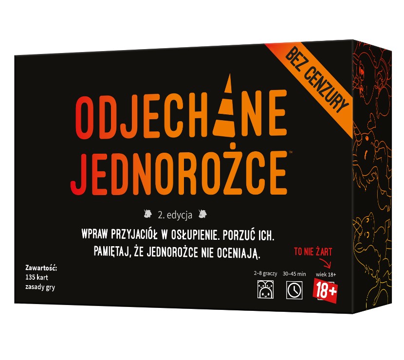 - Oparta na identycznej mechanice co standardowe Odjechane Jednorożce, a jednocześnie pełna brudnych żartów wersja Bez cenzury stanowi doskonałą zabawę dla dorosłych! Jeśli uwielbiacie nieprzyzwoite skojarzenia i czarny humor, żarty na kartach doprowadzą Was do łez!
