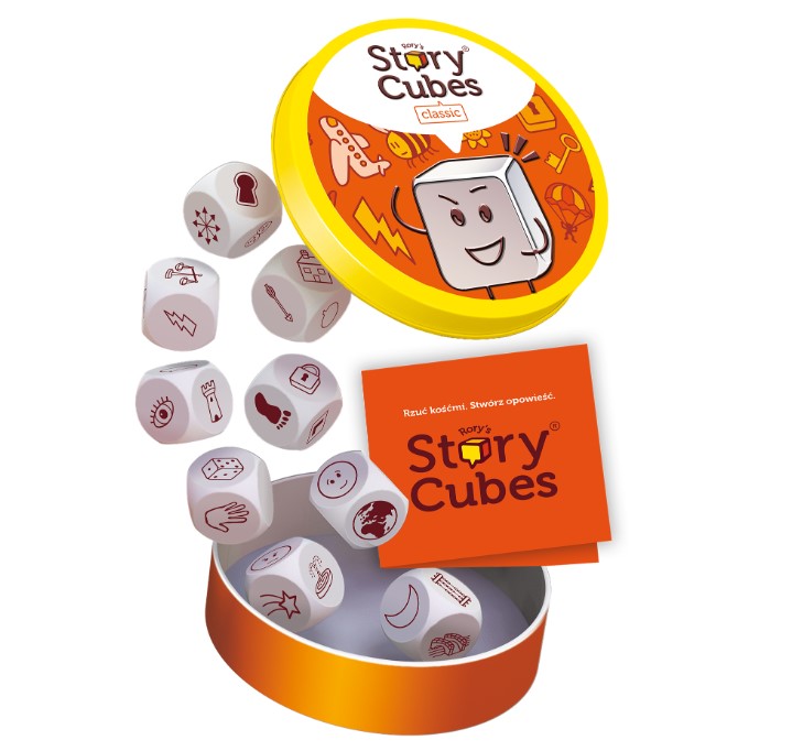 Story Cubes to 9 estetycznie wykonanych, sześciennych kostek, z których każda zawiera na ściankach odmienny zestaw ilustracji inspirujących do tworzenia własnych, oryginalnych opowieści!
