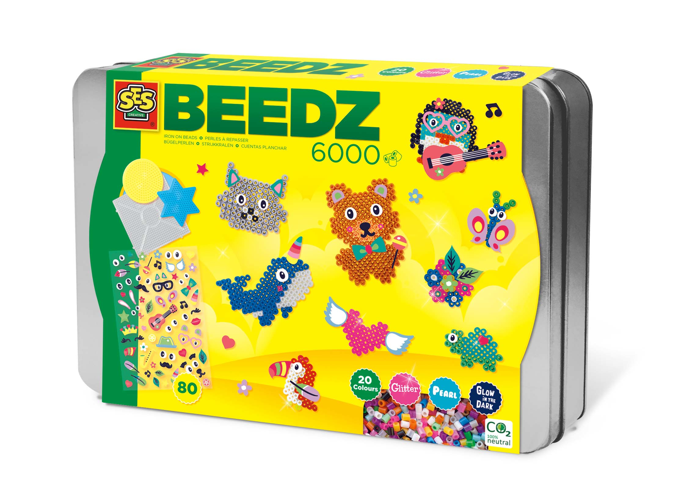 - 6000 koralików w 20 kolorach, w tym brokatowe, perłowe oraz świecące w ciemności