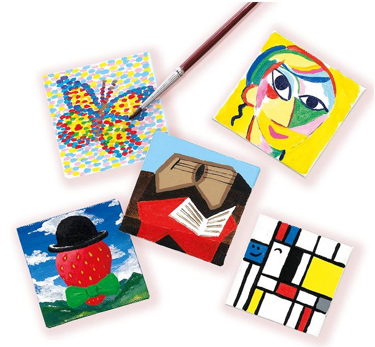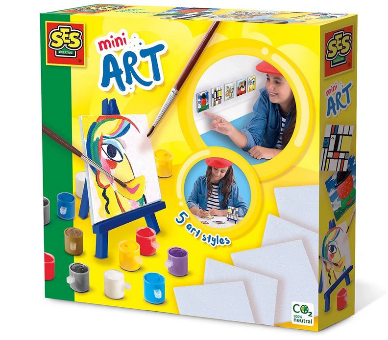 Ten mini zestaw artystyczny zapewnia kolorową, kreatywną zabawę i oferuje mnóstwo swobody artystycznej oraz możliwości rozwoju własnego stylu. Wystarczy chwycić małą drewnianą sztalugę, położyć na niej jedno z pięciu płócien, zaopatrzyć się w pędzle i słoiczki z farbą i zaczyna się kolorowe widowisko. Niezależnie od tego, czy chodzi o sztukę abstrakcyjną, fantazyjne postacie czy ulubione zwierzę - nie ma ograniczeń dla kreatywności! Kreatywni młodzi malarze mogą założyć swoją pierwszą małą pracownię, a potem oczywiście wystawiać swoje mini-obrazy jak w galerii. Oczywiście dokładne instrukcje wyjaśniają poszczególne kroki - więc nic nie może się nie udać!