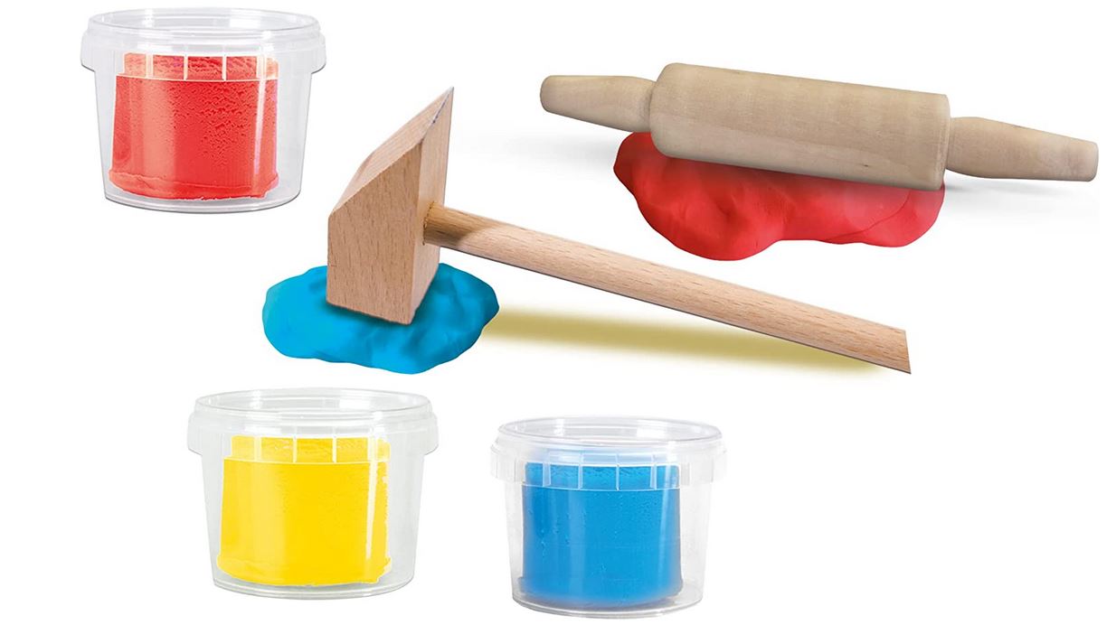 Ten zestaw zawiera masę w 3 kolorach oraz akcesoria do formowania i wałkowania ciasta.