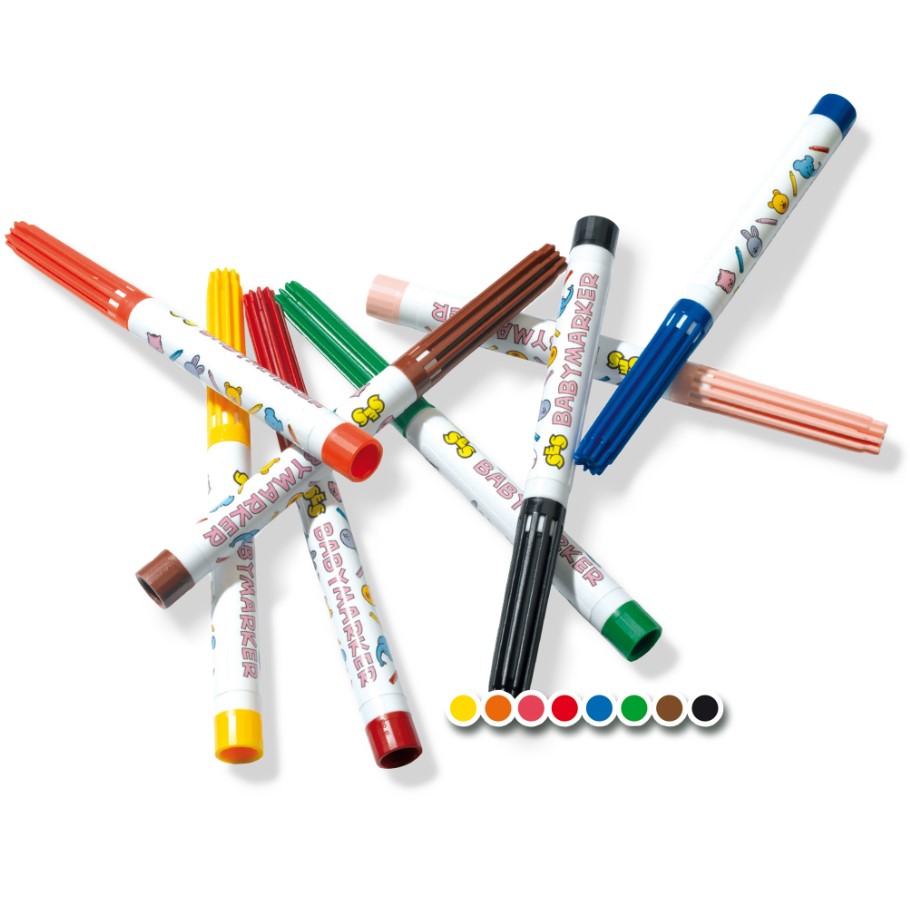Flamastry dla dzieci SES są wyjątkowo bezpieczne i zostały zaprojektowane specjalnie z myślą o najmłodszych artystach. Wyjątkowo mocna, okrągła końcówka ułatwia najmłodszym artystom tworzenie wspaniałych wzorów na papierze. Resztę rodziny uspokoi fakt, że markery te są łatwo zmywalne. Odpowiednie dla dzieci od 12 miesiąca życia. Zestaw zawiera 8 markerów w różnych kolorach.