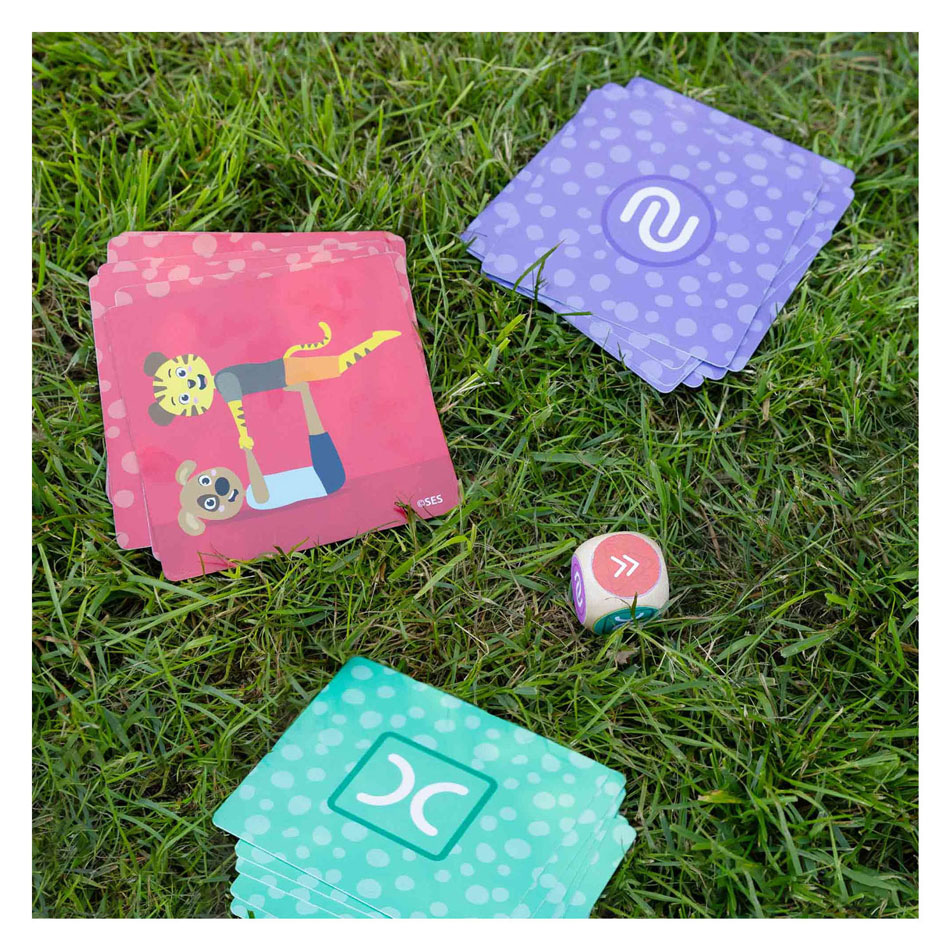 Odkryj tę zabawną grę, idealną do zabawy w ogrodzie lub na plaży. Dzieci mogą rzucić kostką, aby zobaczyć, jaką sztuczkę należy wykonać. Gibka poza? Podnoszenie się nawzajem? Dzięki 27 różnym kartom możliwości jest mnóstwo! Gra zachęca do współpracy i aktywności fizycznej, a także do spędzania czasu na świeżym powietrzu.