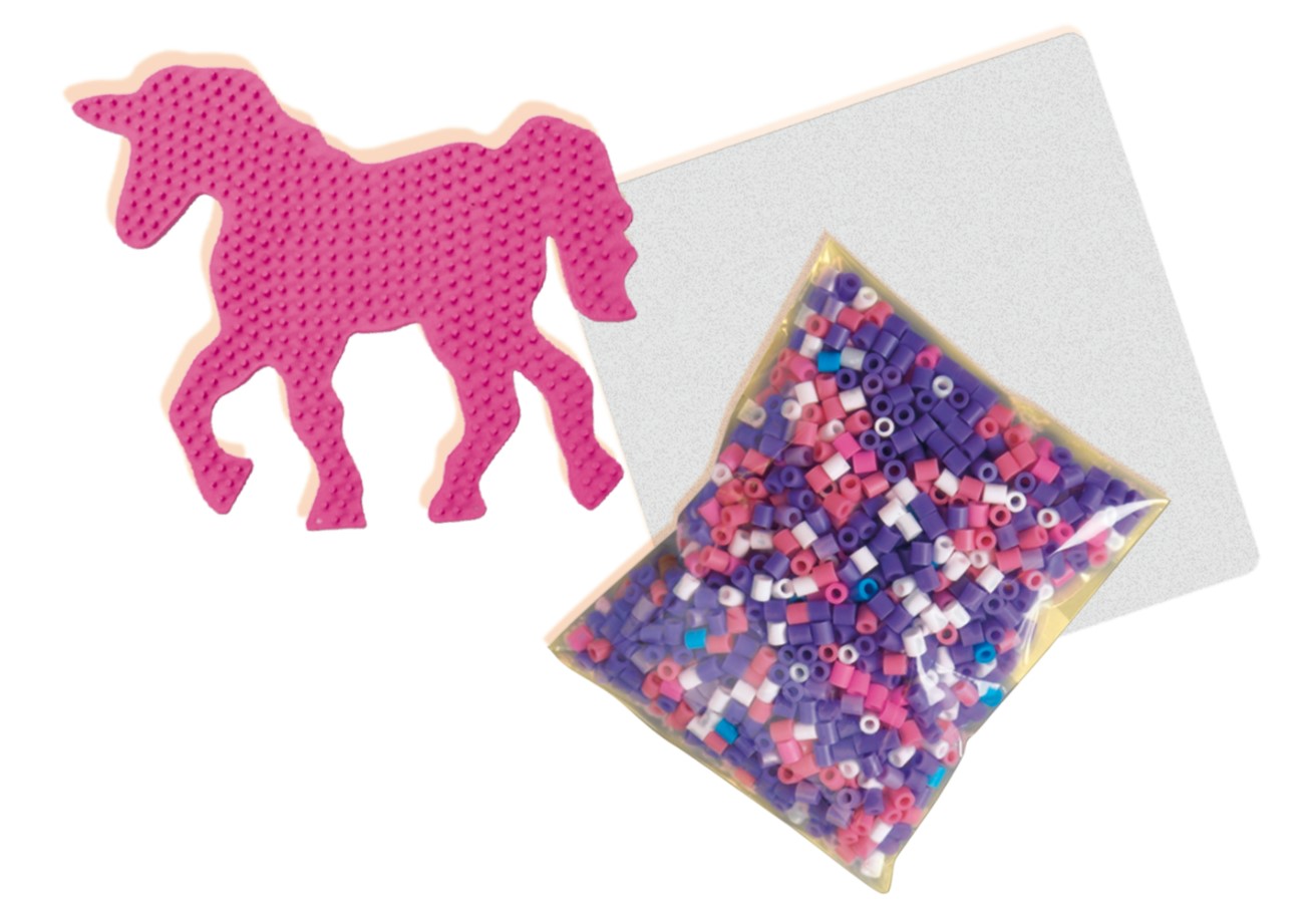 Stwórz najpiękniejsze fantazyjne konie z naprasowywanych koralików. Wybierz własne kolory. Niektóre koraliki świecą w ciemności. Poproś osobę dorosłą, aby wyprasowała dla Ciebie Twoje dzieło i gotowe! Ciesz się pięknymi prasowankami z jednorożcami. W opakowaniu znajduje się 1200 koralików.