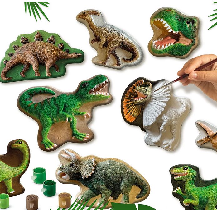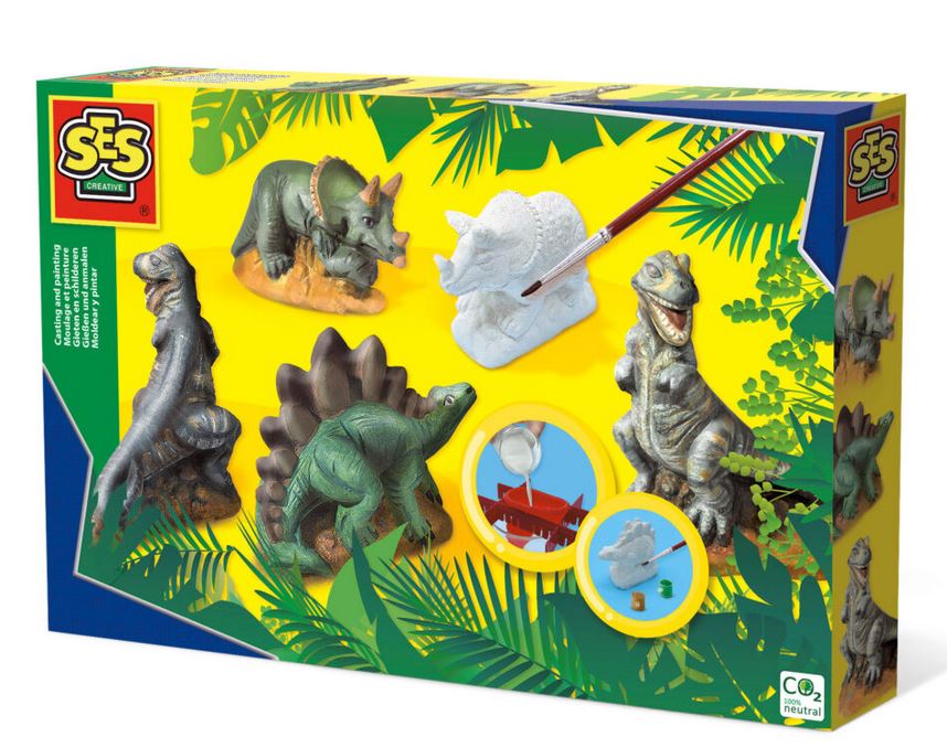 Twórz najpiękniejsze rzeźby gipsowe z SES Creative. Wlej gips do dostarczonych foremek w kształcie rozmaitych dinozaurów. Następnie pomaluj je naturalnymi kolorami i poczuj się jak w prehistorycznym świecie !
