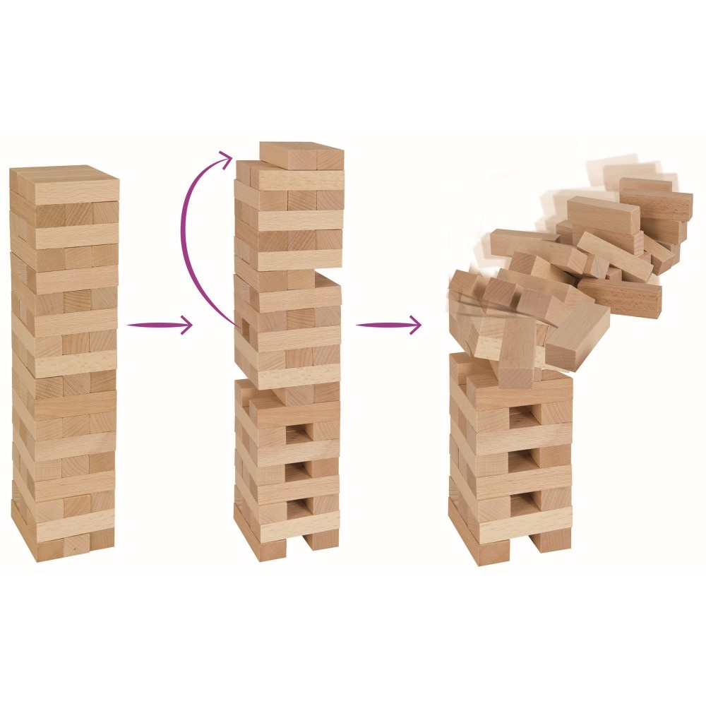 Gra jest prosta - Ty lub Twoi przyjaciele na zmianę wyciągacie klocki, a następnie układacie je w dowolny sposób na wierzchu istniejącego stosu. Musisz być ostrożny - jeśli popełnisz błąd i wieża się zawali,przegrywasz, a gra kończy się. Zwiększaj swoje umiejętności, ponieważ im więcej wyciągniętych klocków, tym trudniej!