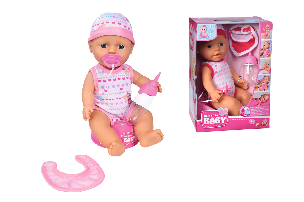 Lalka New Born Baby to doskonały produkt dla dziewczynek, które chcę naśladować swoje mamy i przekazywać zabawę, empatię i miłość na swoje "maleństwa". Lalka mierząca 30 cm wysokości posiada funkcję picia prawdziwej wody i siusiania nią. Model został wykonany tak, by było możliwe mycie go, dziecko może więc z powodzeniem zabrać ulubioną zabawkę do kąpieli lub samodzielnie ją pielęgnować. W zestawie znajduje się lalka funkcyjna New Born Baby, ubranko składające się z body i czapeczki, nocnik, butelka, smoczek oraz śliniaczek.