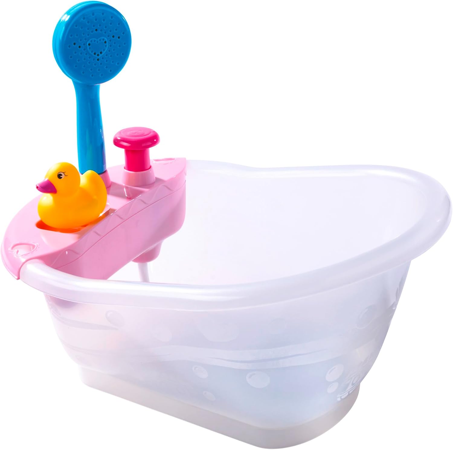 - Przezroczysta plastikowa wanienka - trwała i łatwa do czyszczenia, doskonała do zabawy w kąpiele.