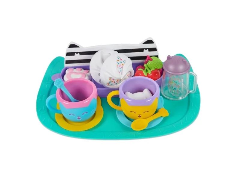 Ten jedyny w swoim rodzaju zestaw jest doskonałym dodatkiem do zestawu kuchennego dla dzieci, ponieważ zawiera urocze kubki dla kotów, kolorową posypkę, łyżeczki do herbaty dla kotów i tacę w kształcie kotka!