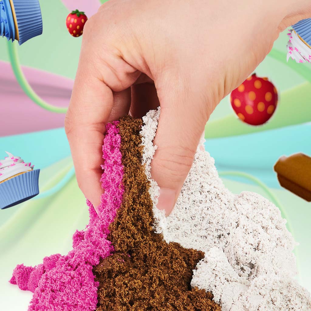 Dzieci uwielbiają bawić się w odgrywanie ról! Dzięki zabawie piaskiem kinetycznym mogą wcielić się w rolę sprzedawcy lodów. Pachnący piasek pobudza jeszcze więcej zmysłów i kreatywność dzieci. Piasek kinetyczny przyjemnie przelewa się przez palce i bardzo łatwo formować nim wszystko to, co podpowiada Ci wyobraźnia. Piasek klei się, ale nigdy do Twoich rąk. Baw się w sprzedawcę lodów i twórz smakowite desery lodowe ze świetnymi dodatkami, gofry z lodami i inne kolorowe słodkości. Nie ma ograniczeń dla wyobraźni, a opakowania uzupełniające z pachnącym piaskiem (dostępne osobno) inspirują powstawanie nowych kreacji. Nowe rodzaje i zapachy lodów można również tworzyć, mieszając różne kolory piasku. Ponieważ piasek kinetyczny nie wysycha, jest zawsze gotowy do ponownego użycia.