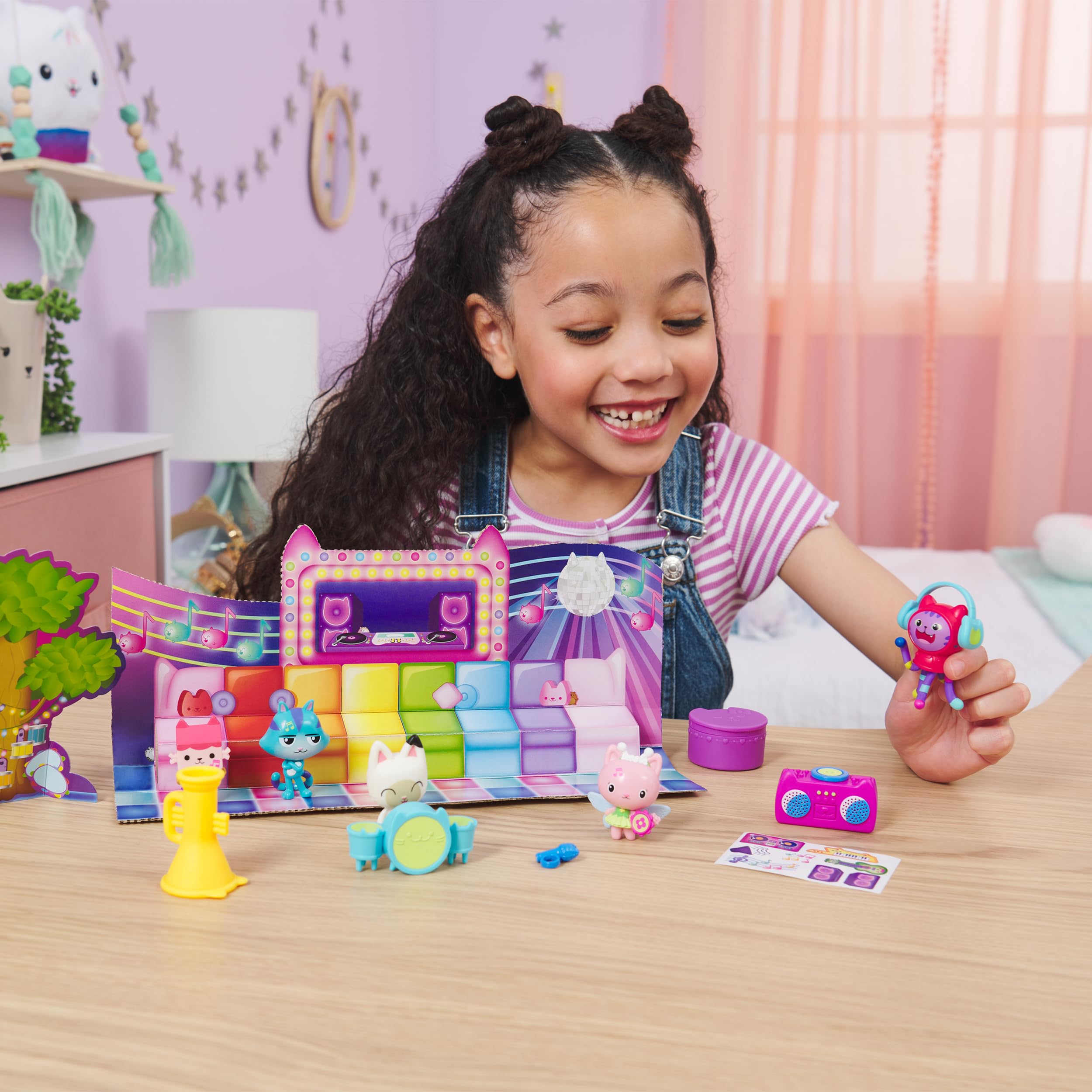 Przygotuj się na rockowe szaleństwo z ulubionymi zabawkami Kociego Domku Gabi w zestawie muzycznym! Ten 14-częściowy zestaw jest obowiązkowy dla fanów Gabby i zawiera ulubione kotki.