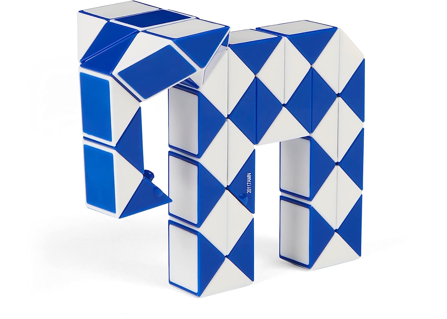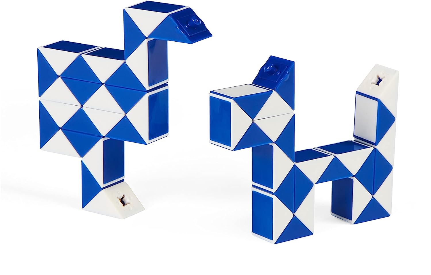 Wąż Rubika to zabawka z 24 klinami w kształcie pryzmatu. Kliny są połączone, za pomocą sprężynowych śrub, w taki sposób, że można je przekręcić, ale nie można ich rozdzielić. Dzięki skręcaniu Wąż Rubika może osiągnąć takie pozycje jak linia prosta, piłka, pies, kaczka, prostokąt, wąż i wiele innych wymyślnych kształtów i figur. Z tym podwójnym zestawem węży, można połączyć dwa lub więcej węży razem, aby zbudować fantazyjne kreacje, takie jak królik, kobra, dinozaur lub homar! Im więcej węży łączących, tym więcej nieskończonych możliwości w tej układance 3D. Wynaleziona w 1974 roku przez Ernő Rubika, oryginalna zabawka logiczna z dopasowywaniem kolorów - Kostka Rubika - została stworzona, aby pomóc uczniom zrozumieć problemy trójwymiarowe. Magiczna Kostka robiła rzeczy, których świat wcześniej nie widział. Obracała się, wykręcała, a mimo to nie pękała. Dodanie 54 kolorowych naklejek na sześciu ściankach nadało układance jej kultowy wygląd. Ponad 40 lat historii sprawiło, że Kostka Rubika stała się jedną z najlepiej sprzedających się zabawek w historii. Z nowym Łączonym Wężem Rubika - połącz swoje Węże i twórz nowe formy, aby stać się mistrzem łamigłówek w swoim domu. Pokaż nam, co potrafisz zbudować z tej zabawki! Ta sprytna łamigłówka to idealny pomysł na prezent dla osób w każdym wieku lub prezent dla każdego, kto lubi wyzwania. Podziel się swoją kreatywnością na naszych kanałach społecznościowych za pomocą hashtagu #RubiksSnake.
