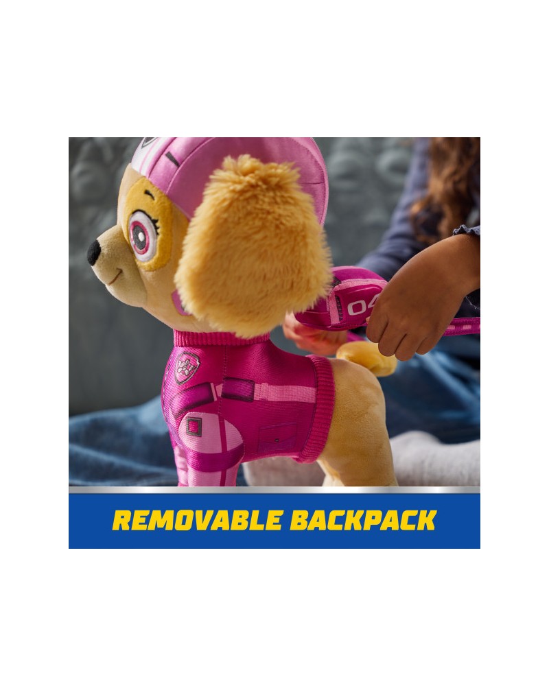 - Szczegółowe wykonanie: Z dbałością o detale odwzorowano charakterystyczne cechy Skye, takie jak jej różowy strój pilota i gogle, co sprawia, że maskotka wiernie oddaje wygląd bohaterki z serialu.