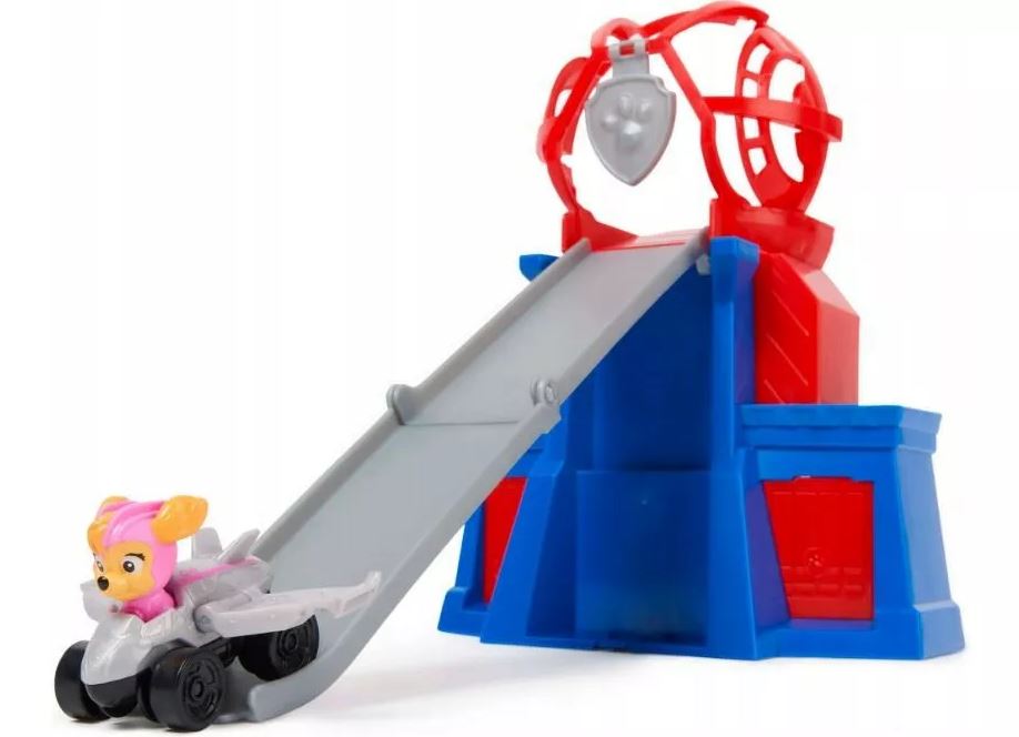 Oprócz tego znajdziesz również pojazd wyścigowy Skye z prawdziwymi, działającymi kołami, dzięki czemu dzieci mogą pchać i wystrzeliwać Skye z wieży wprost na kolejną akcję ratunkową!