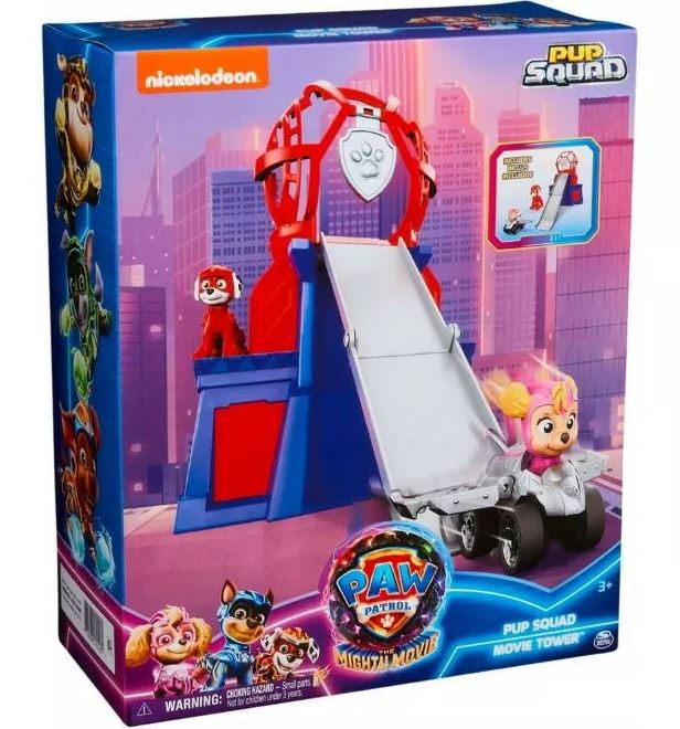 Wyjątkowa wieża mierząca prawie 30cm wysokości, z wieloma obszarami do zabawy i zjeżdżalnią. Przeżyj ponownie emocje, które znasz z filmu PAW Patrol The Mighty Movie. Zestaw zawiera figurkę Marshalla ubraną w oficjalny mundur Mighty Pups, Marshall wygląda dokładnie tak, jak w filmie!