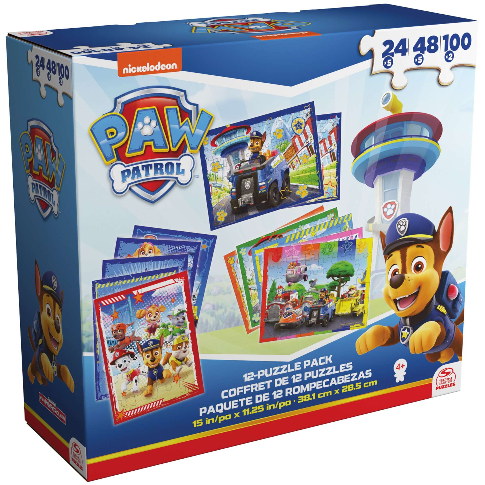 Zestaw puzzli umożliwia ułożenie niezwykle barwnych obrazków przedstawiających bohaterów bajki. Ułożone obrazki mają wymiary 38,1 x 28,5 cm. W skład zestawu wchodzi 12 układanek: 5 x 24 elementy, 5 x 48 elementów, 2 x 100 elementów. Układanie puzzli poprawia koncentrację, uczy cierpliwości i stymuluje logiczne myślenie.Zestaw ten doskonale sprawdzi się jako niebanalny prezent dla małych miłośników Psiego Patrolu.