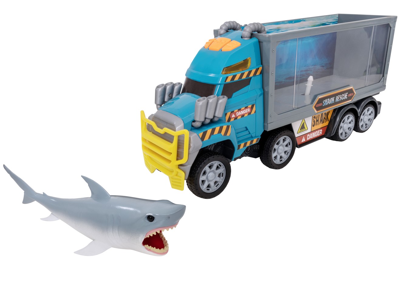 Ta niesamowita ciężarówka jest wyposażona w wiele interaktywnych funkcji, które zapewnią Twojemu dziecku wiele godzin zabawy. Naciśnij środkowy przycisk i podziwiaj pojazd poruszający się samodzielnie - rekin również porusza się wraz z ciężarówką! Naciśnij dwa pozostałe przyciski, a Twoje dziecko przeniesie się do świata wspaniałych melodii i realistycznych dźwięków pojazdu.
