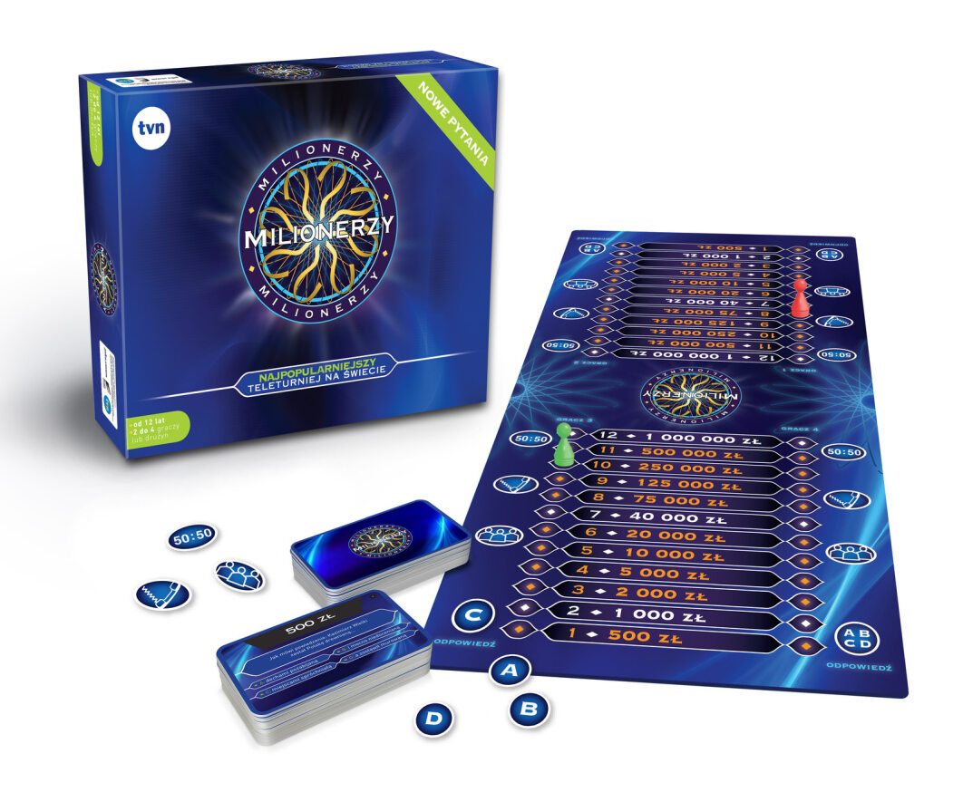 Najnowsza edycja gry planszowej oparta na popularnym na całym świecie teleturnieju. Zmierz się z zupełnie nowymi pytaniami i wygraj milion! Wszystkie pytania w grze pochodzą z programu telewizyjnego TVN. Wciel się w rolę zawodnika lub prowadzącego „Milionerów” i przeżyj pełne napięcia chwile w gronie przyjaciół.