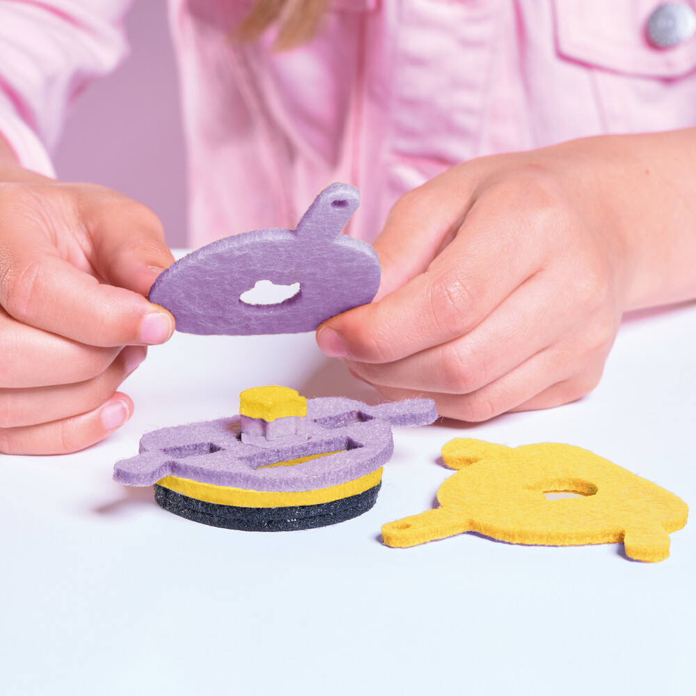 Zawartość opakowania: 5 arkuszy filcu, 1 arkusz z naklejkami, 1 zawieszka do breloczka, instrukcja.