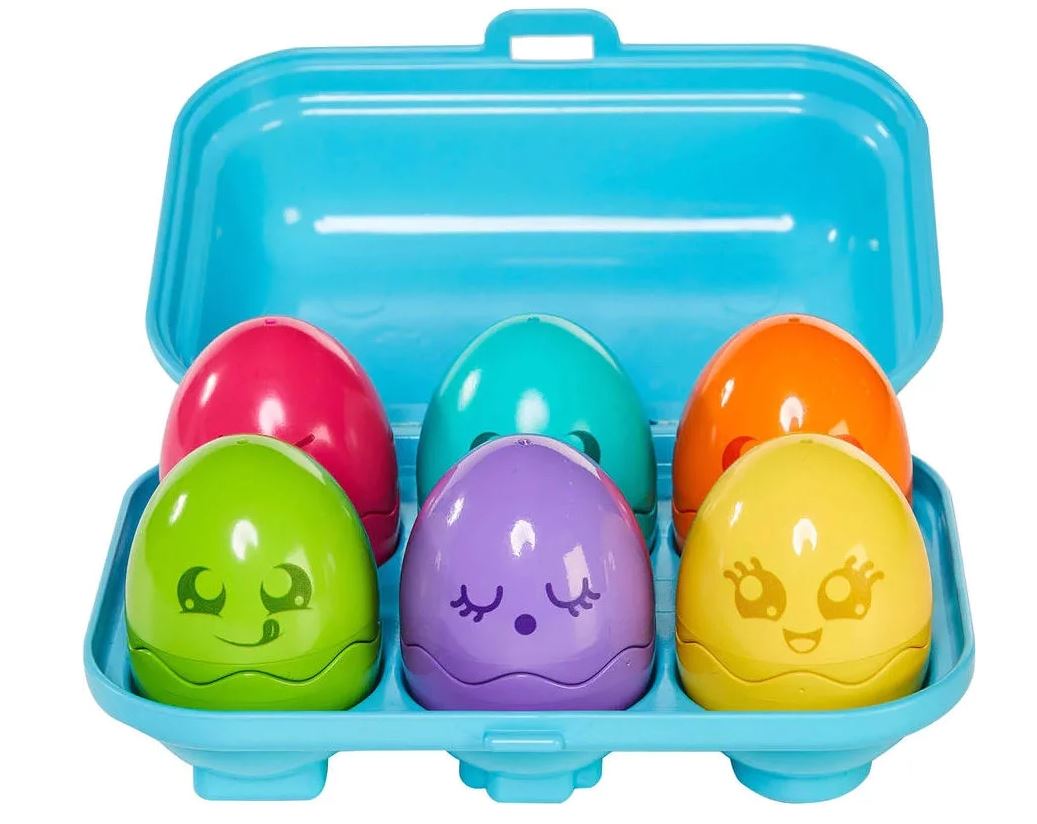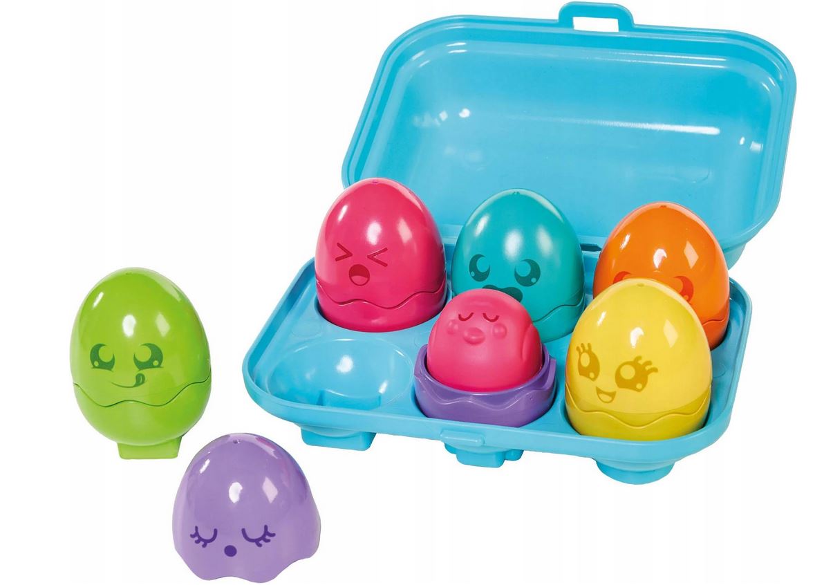 Niebieskie jajeczka z dźwiękami, w których kryją się wesołe pisklaki gwarantują świetną zabawę. Dzieci usłyszą radosne ćwierkanie wciskając ich główki. Różne kształty umieszczone na spodzie pudełka służą jako sorter. Zabawa poprzez naukę rozwija zdolności manualne oraz wzbogaca wyobraźnię maluchów.