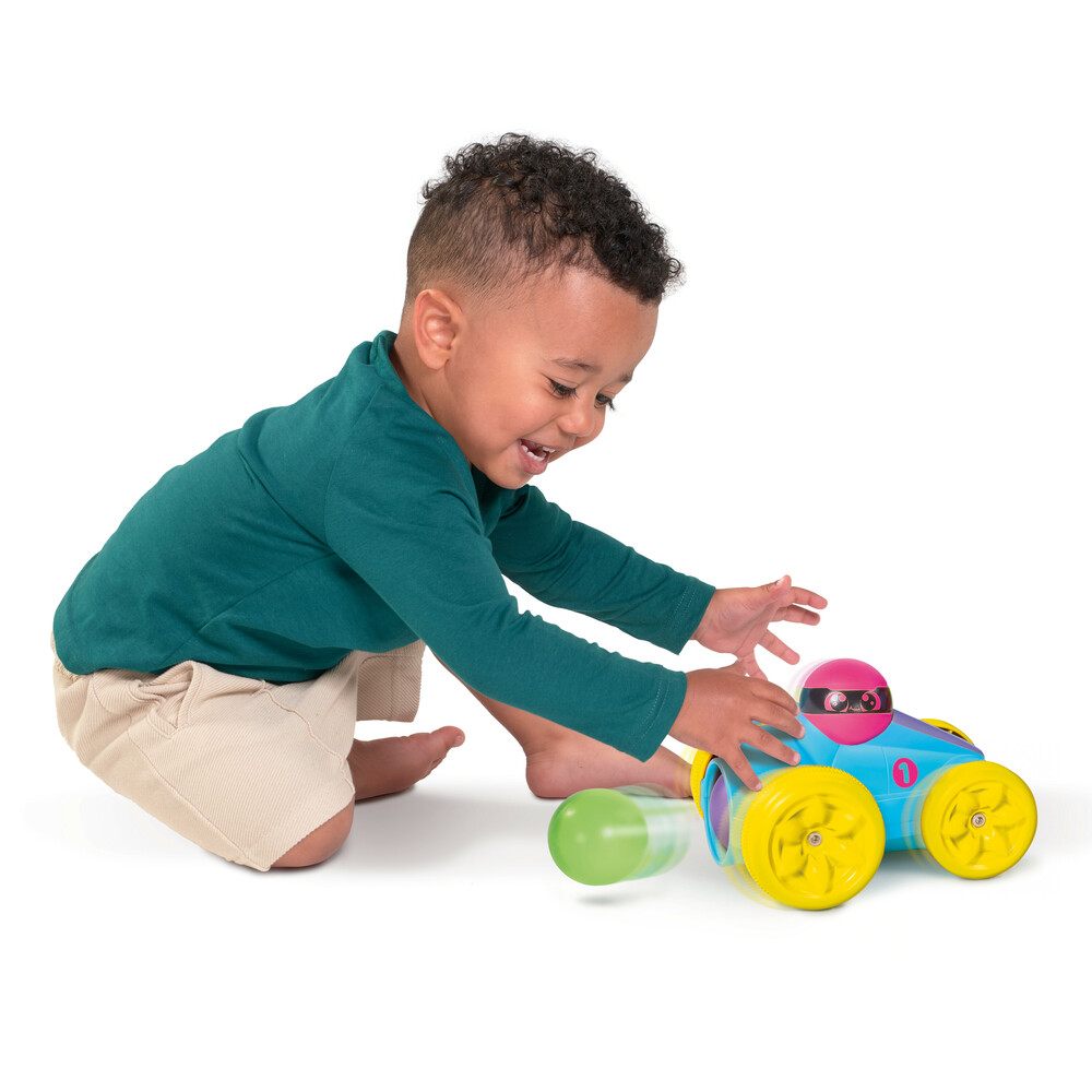 - Interaktywna zabawa: Załaduj trzy kolorowe kulki do autka i ruszaj w drogę, obserwując, jak kule wyskakują podczas jazdy. Ten mechanizm zachęca dzieci do aktywnej zabawy i rozwija ich refleks oraz motorykę.