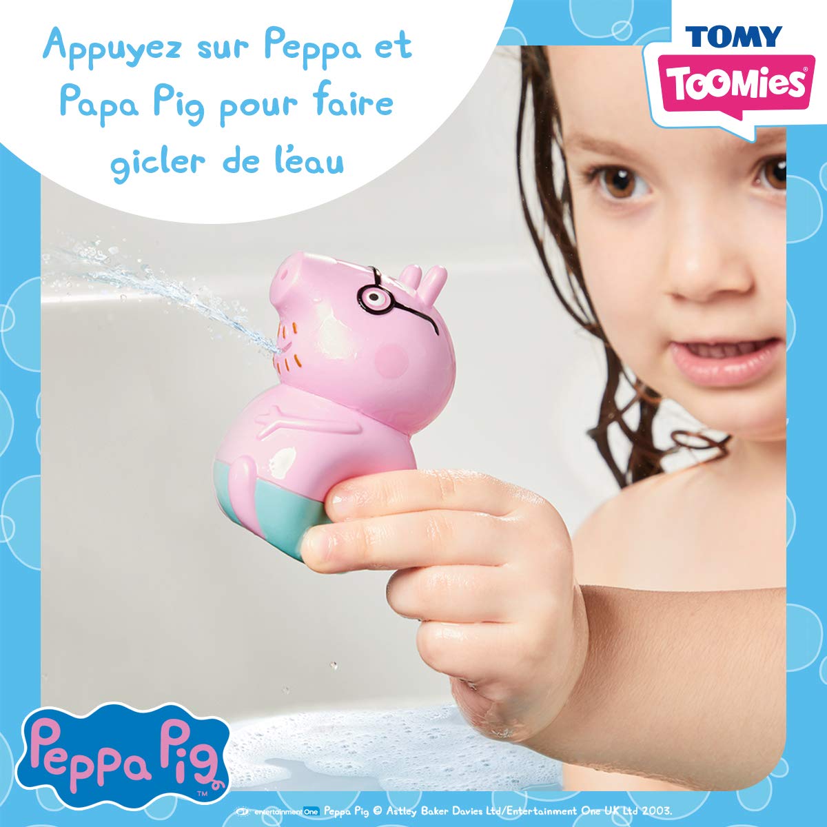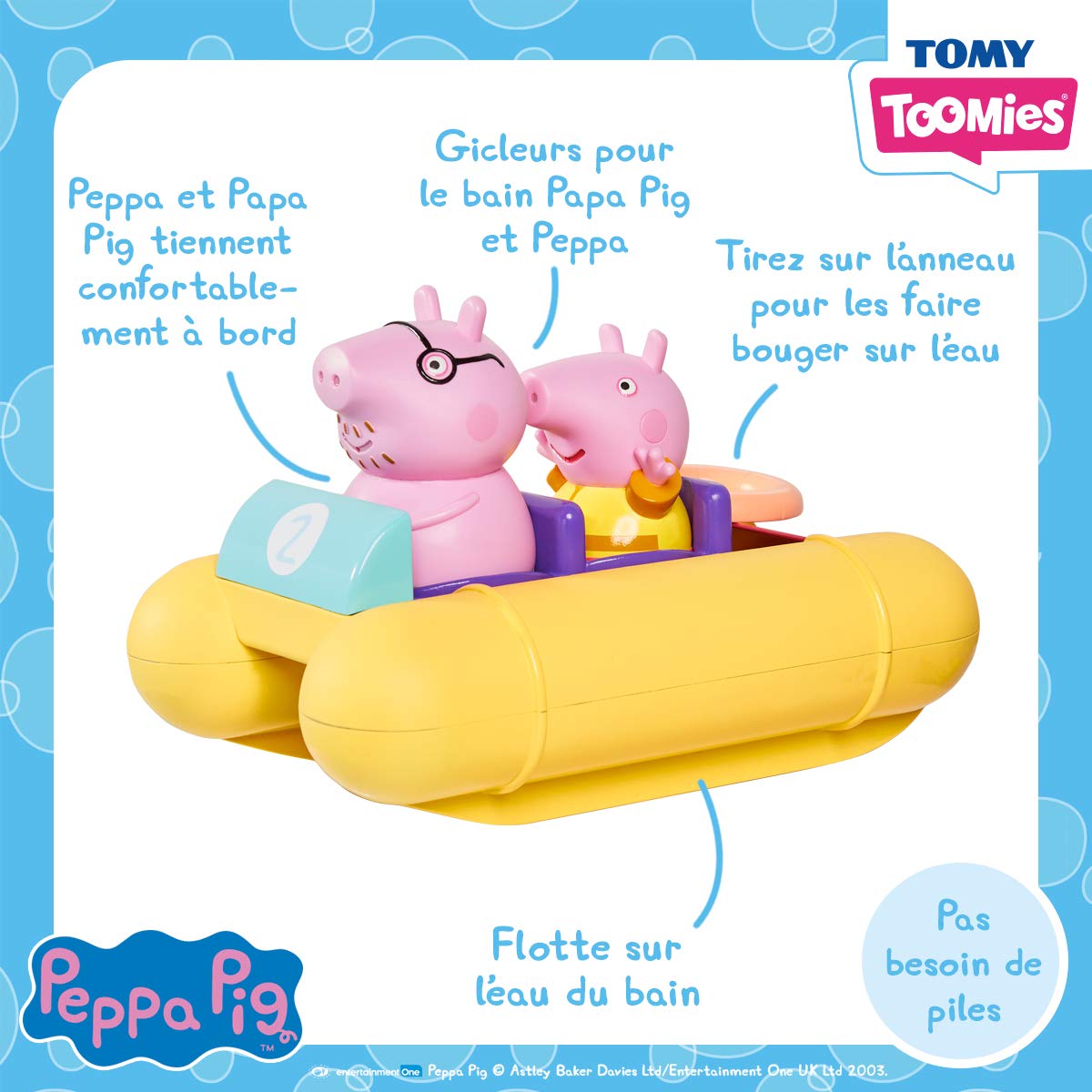 Baw się w wannie z rodziną Peppa Pig! Zakończ dzień jak Świnka Peppa głośnym parskaniem i śmiechem! Od dziś kąpiel nie będzie już nudnym obowiązkiem! Świnka Peppa i Tata Świnka nie tylko wskakują do błotnistych kałuż, również uwielbiają wspólne pływanie na rowerku wodnym! Zestaw zawiera pływający ponton w kształcie rowerka z dwoma figurkami z ulubionej bajki wszystkich dzieci Świnka Peppa! Figurki tata świnka oraz Peppa tryskają wodą! Zestaw idealnie sprawdzi się w kąpieli w wannie jak i na świeżym powietrzu w brodziku. Zestaw pomaga maluchom budować pewność siebie w wodzie i wokół niej. W miarę rozwijania umiejętności motorycznych posługiwania się zabawkami, dzieci nauczą się rozumieć przyczynę i skutek za pomocą psikania wodą oraz polubią odgrywać role i opowiadać historie.
