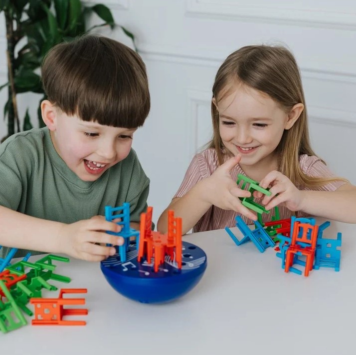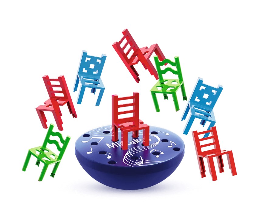 Wykaż się zręcznością i refleksem podczas trzymającej w napięciu, szalonej rozgrywki i spróbuj dołożyć do konstrukcji wszystkie swoje krzesła, zanim zrobią to inni.