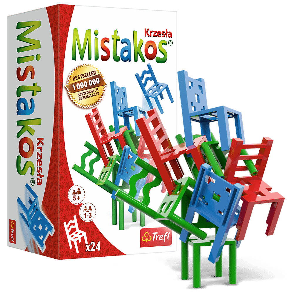 Mistakos to klasyczna gra zręcznościowa dla dzieci – i nie tylko! Walka o stołki z pewnością pochłonie również starszych graczy. Zapewnij swojej rodzinie wciągająca rozrywkę z nutką zdrowej rywalizacji!