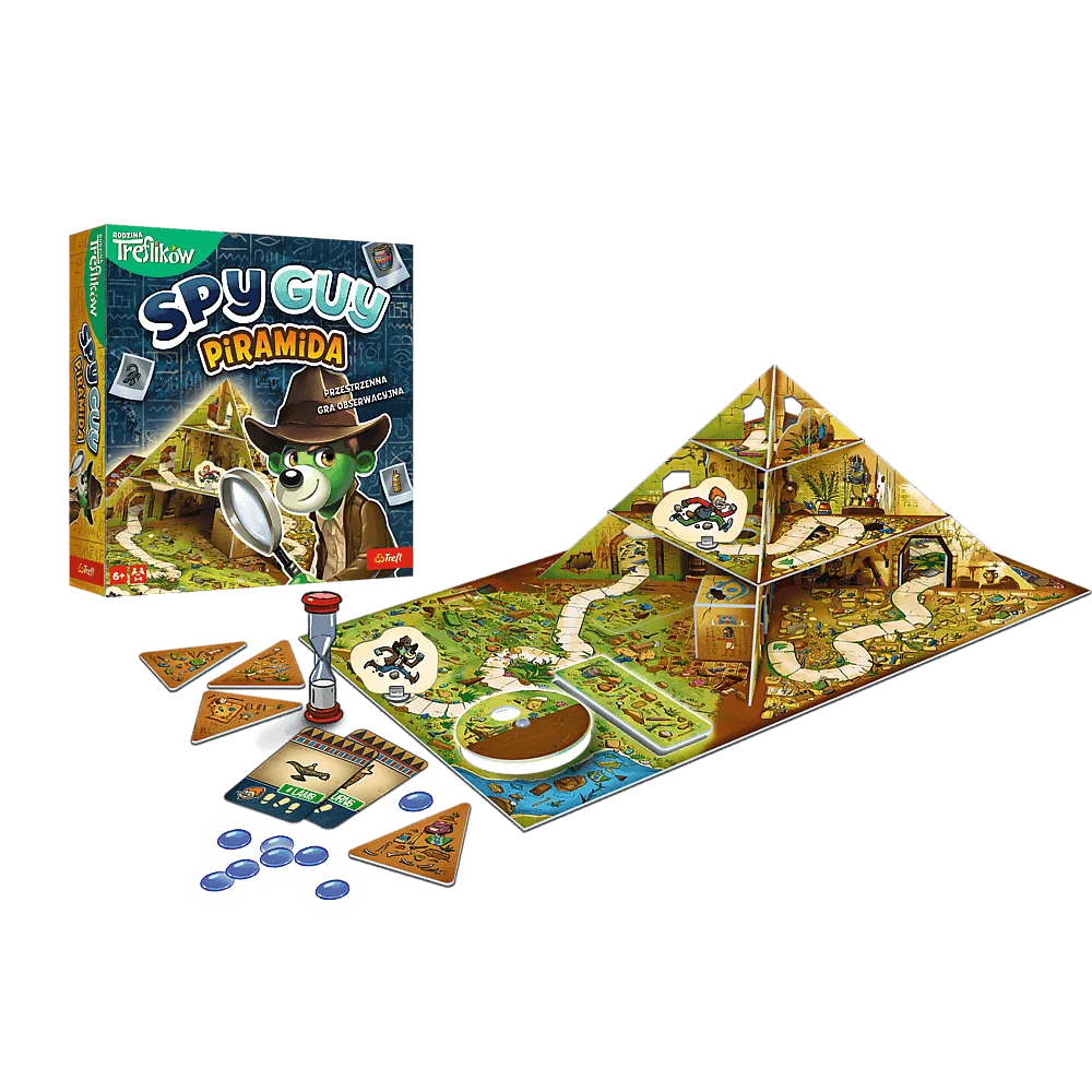 Spy Guy Piramida to odsłona kooperacyjnej gry obserwacyjnej z niesamowitą, przestrzenną planszą, wyposażoną w ruchome elementy.