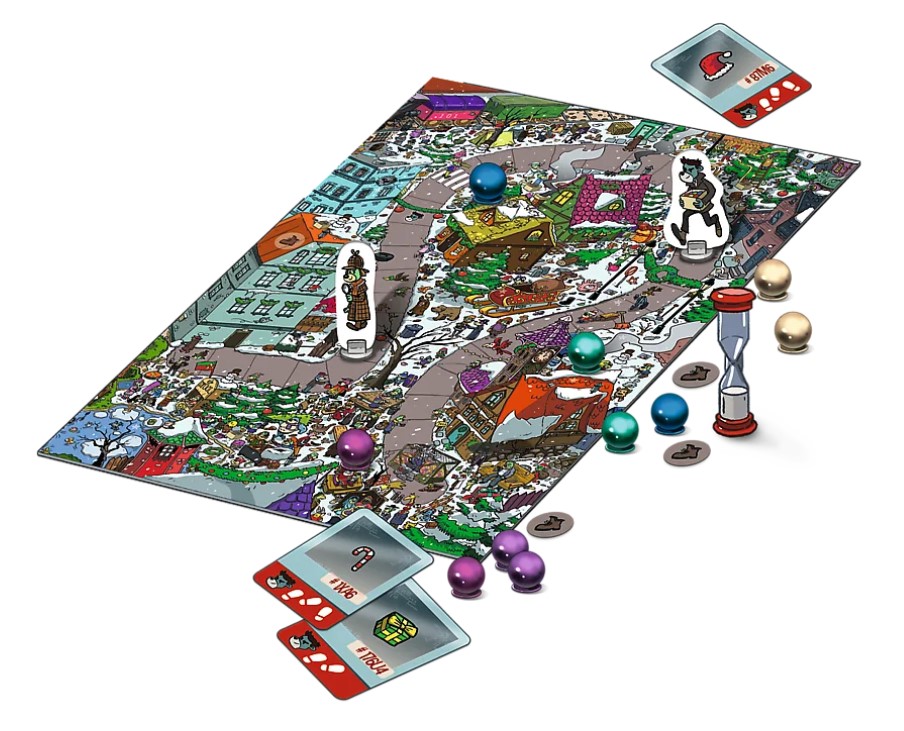 Spy Guy: Zimowa Przygoda to nowa wersja gry Spy Guy. Plansza i karty poszlak przygotowane są w świątecznym klimacie, a znalezione przedmioty zaznaczacie kolorowymi bombkami.