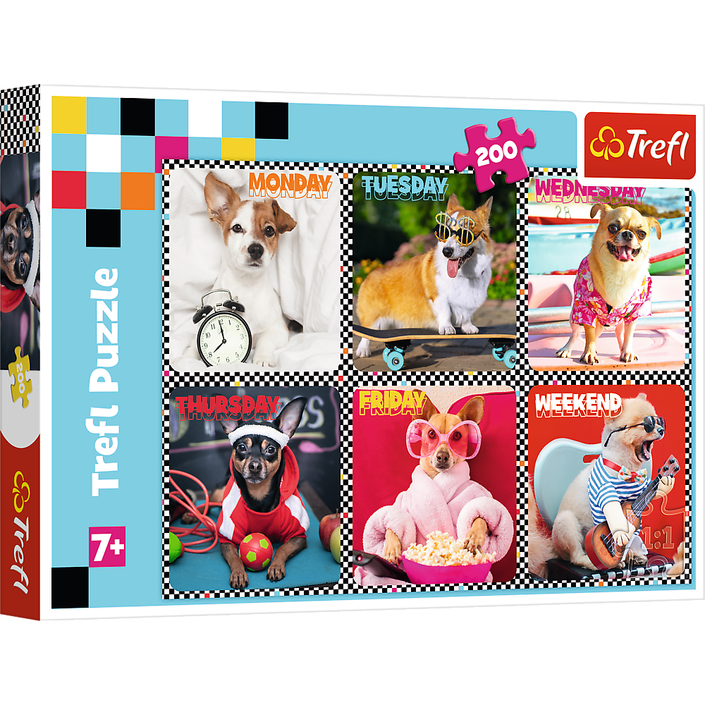 Puzzle składające się z 200 elementów przedstawiające wesołe psy.