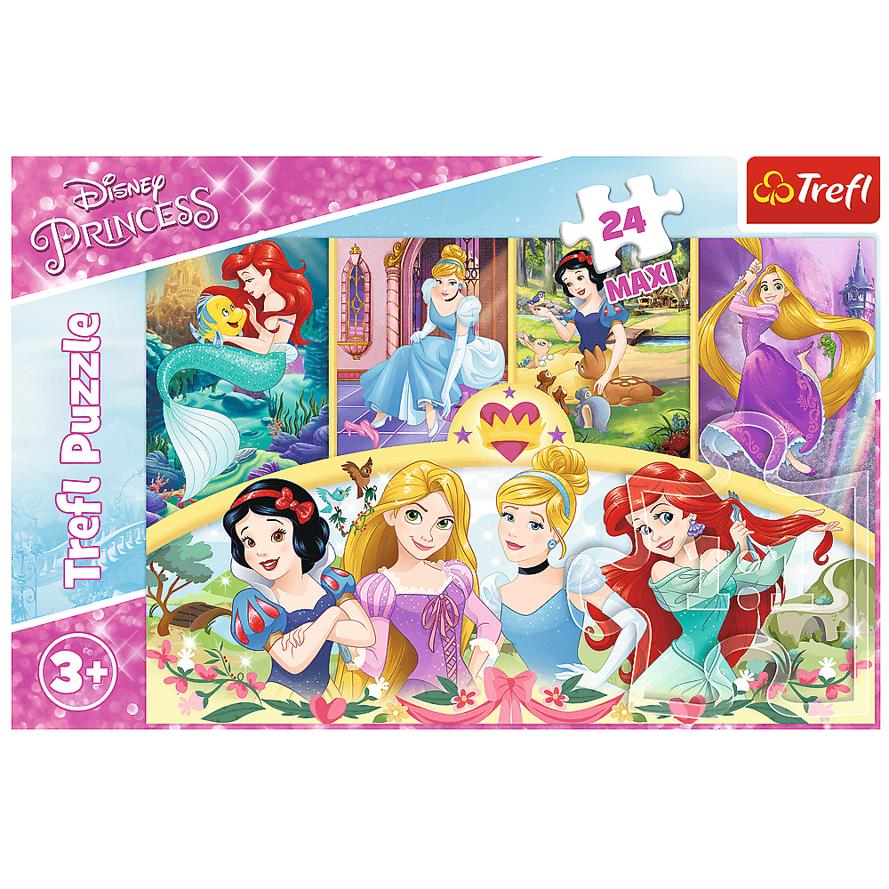 Puzzle składające się z 24 bardzo dużych elementów, zaprojektowaną z myślą o wszystkich fankach księżniczek z bajek Disneya. Po ułożeniu układanki powstanie duży obrazek.