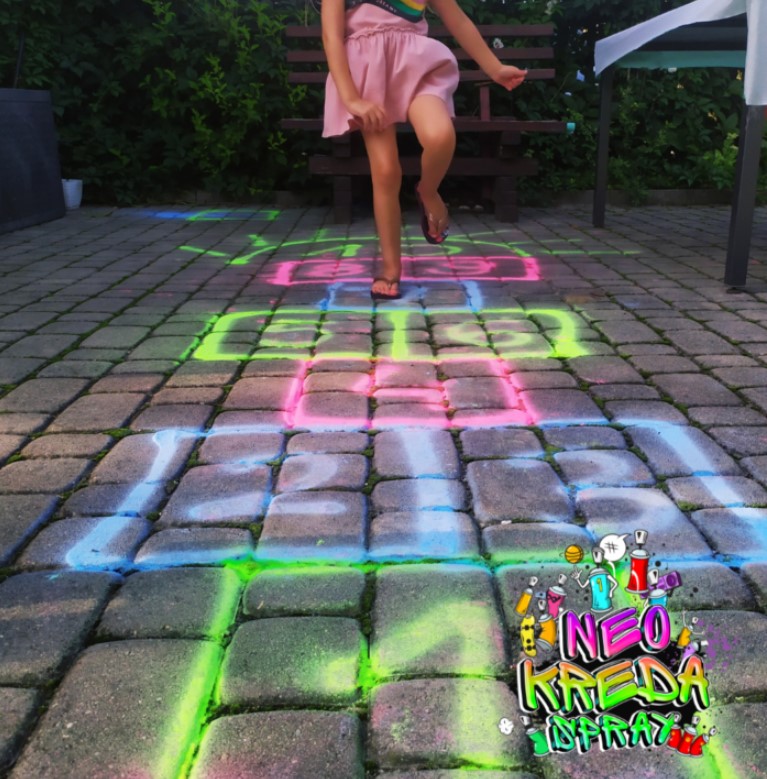 Kreda w sprayu znakomicie nadaje się do kreatywnych działań. Pomalujesz nią takie powierzchnie jak szkło, asfalt, drewno, kamienie czy trawa. NEO KREDA daje taki sam efekt jak farba w sprayu, ale w odróżnieniu od niej, jest zmywalna wodą. Należy wziąć pod uwagę, że wykonane nią malunki na zewnątrz pomieszczeń, zostaną także usunięte wraz z deszczem lub innym opadem atmosferycznym.