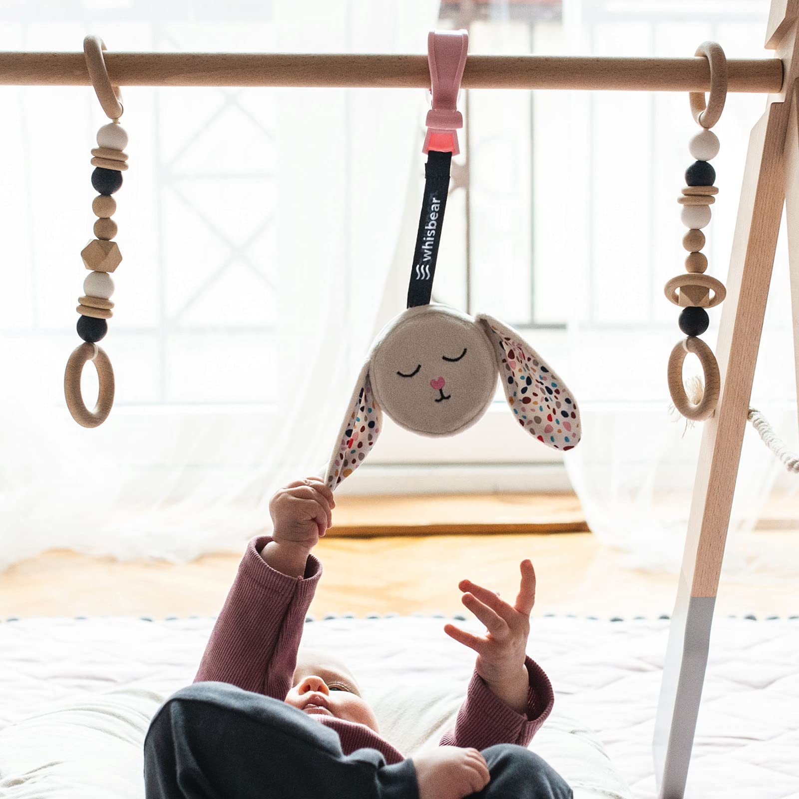 Whisbear Szumiący Króliś nie tylko zapewnia komfort, lecz także wspiera rozwój Twojego dziecka od pierwszych miesięcy życia. Ta urocza zawieszka pomaga w kształtowaniu zmysłu słuchu poprzez delikatne dźwięki, które koją i uspokajają. Długie, kolorowe uszy króliczka zachęcają do chwytania, co jest doskonałym ćwiczeniem dla małych rączek, poprawiając motorykę i koordynację ruchową. Dzięki temu prostemu, lecz przemyślanemu projektowi, Twój maluszek odkrywa świat w sposób pełen radości i bezpieczeństwa.