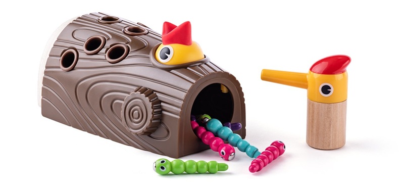 - Interaktywny zestaw: Drewniany młotek stylizowany na dzięcioła i pień z otworami stają się źródłem godzinnej zabawy i nauki.
