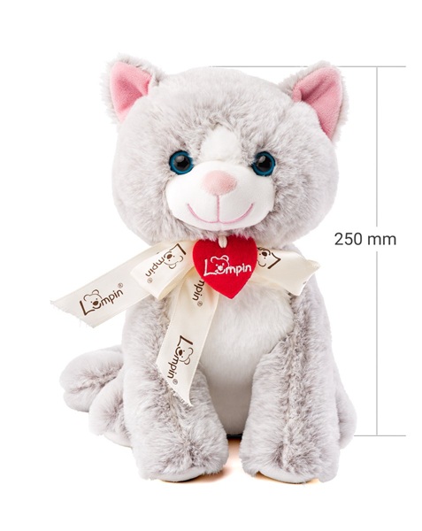- Estetyczny design: Subtelny szary kolor i charakterystyczne czerwone serduszko na kokardce sprawiają, że kotka Jacqueline wyróżnia się wśród innych maskotek.